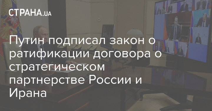 Президент России Владимир Путин подписал федеральный закон о ратификации договора о всеобъемлющем стратегическом партнерстве между Российской Федерацией и Исламской Республикой Иран.