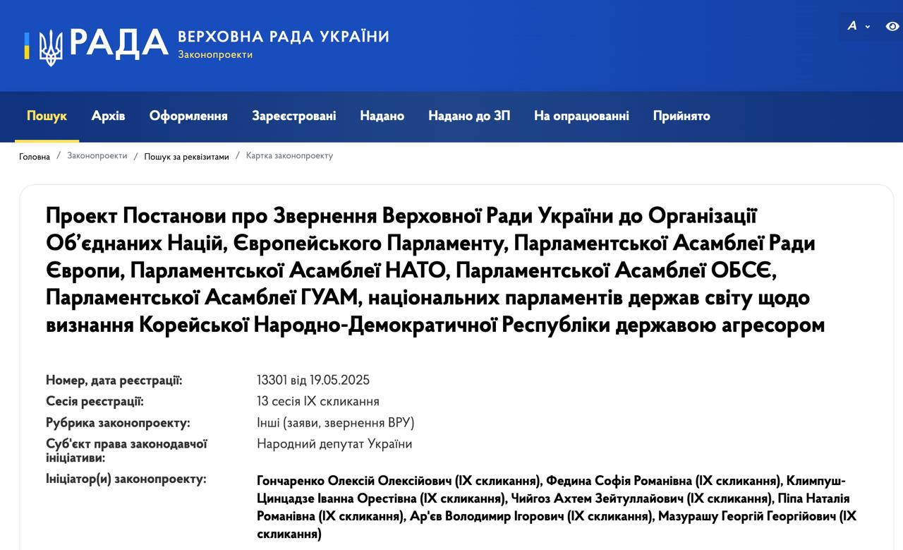 "Евросолидарность" подала законопроект о признании Северной Кореи государством-агрессором