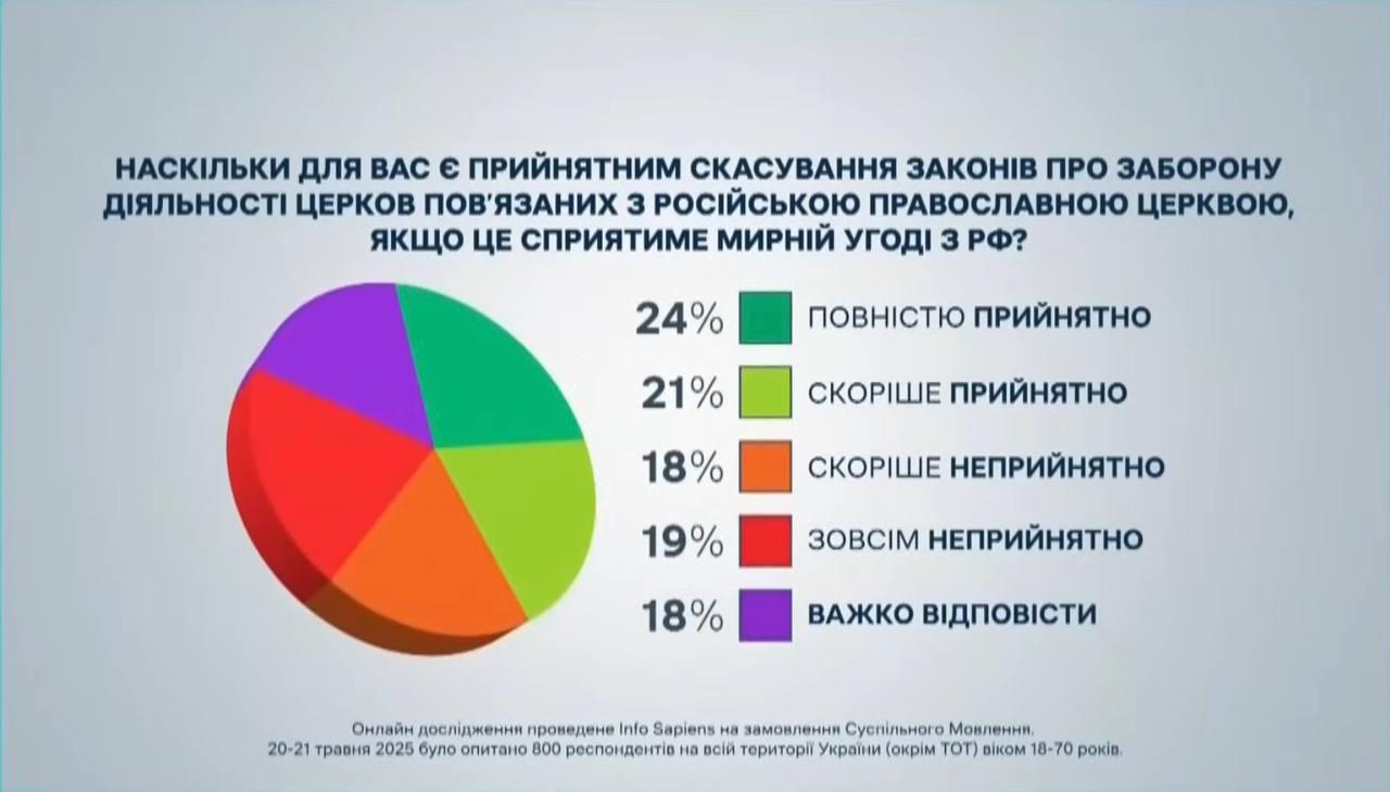 Почти половина украинцев поддерживают отмену закона, запрещающего УПЦ, если это поможет завершению войны - опрос