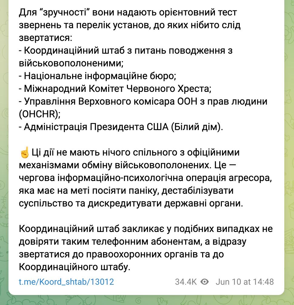 15.14 Представители России звонят родственникам украинских военнопленных и предлагают писать обращения к украинским властям, сообщает украинский Координационный штаб.