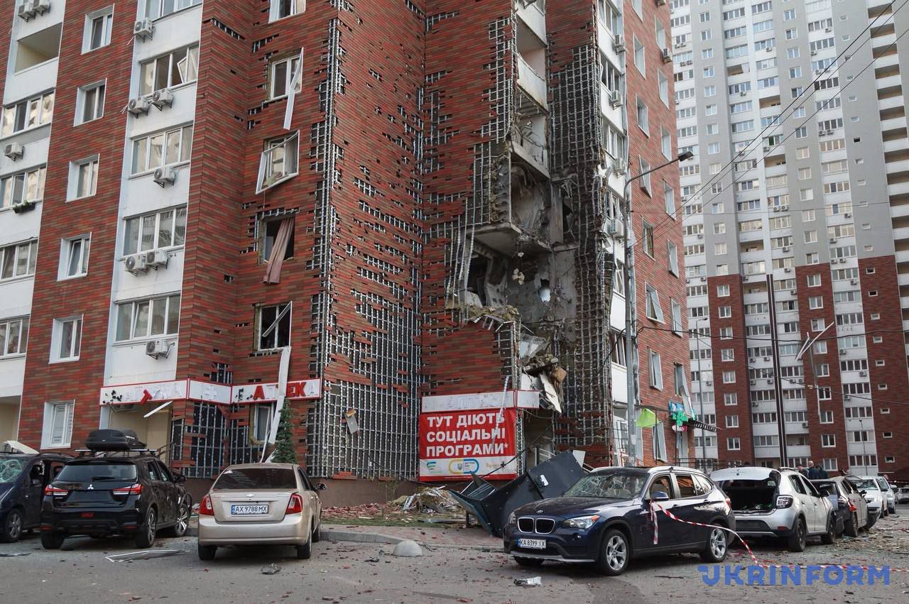Момент прилета по многоэтажке в Киеве попал на видео.