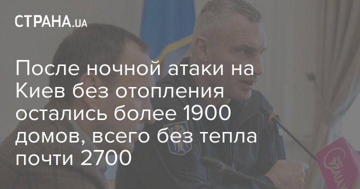 В результате атаки РФ на столицу прошлой ночью и повреждения объекта критической инфраструктуры без тепла остались 1905 домов.