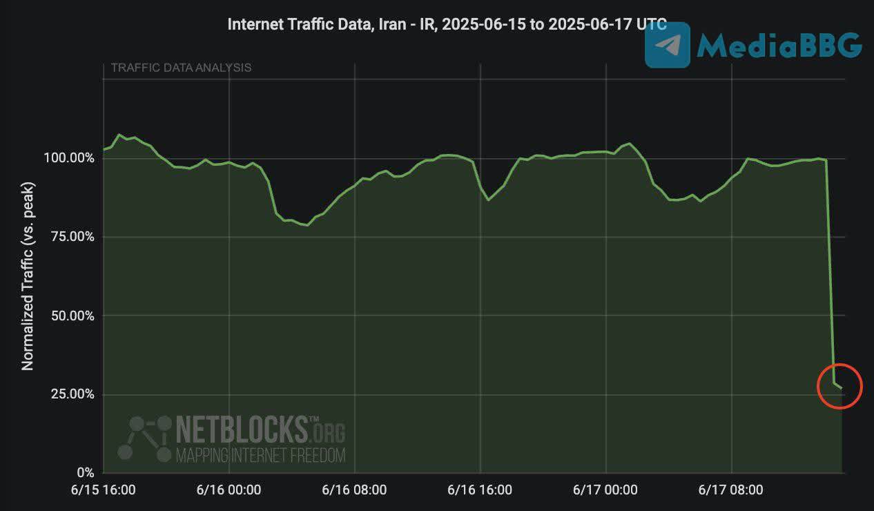 NetBlocks підтверджує значне падіння інтернет-трафіку в Ірані.