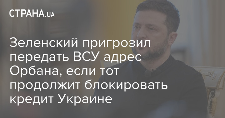 Президент Володимир Зеленський погрожує надати адресу прем'єр-міністра Угорщини Віктора Орбана Збройним силам України, якщо той і надалі блокуватиме кредит Україні в 90 мільярдів євро.