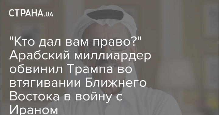Впливовий мільярдер та філантроп з Об'єднаних Арабських Еміратів Халаф Ахмад Аль Хабтур, який очолює Дубайську національну страхову компанію, звинуватив президента США Дональда Трампа у втягуванні Близького Сходу у війну з Іраном.