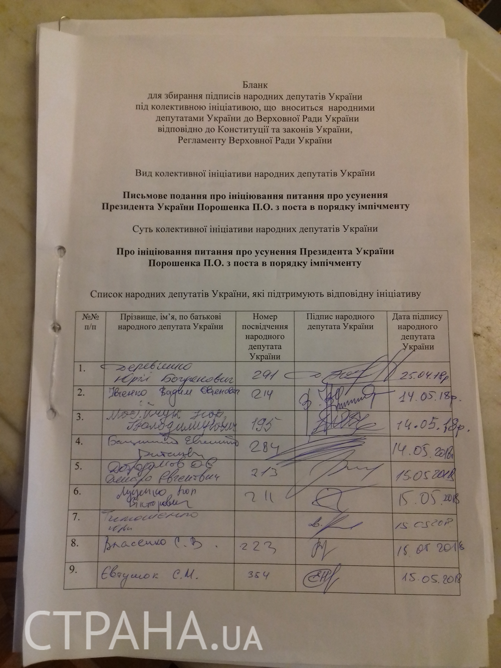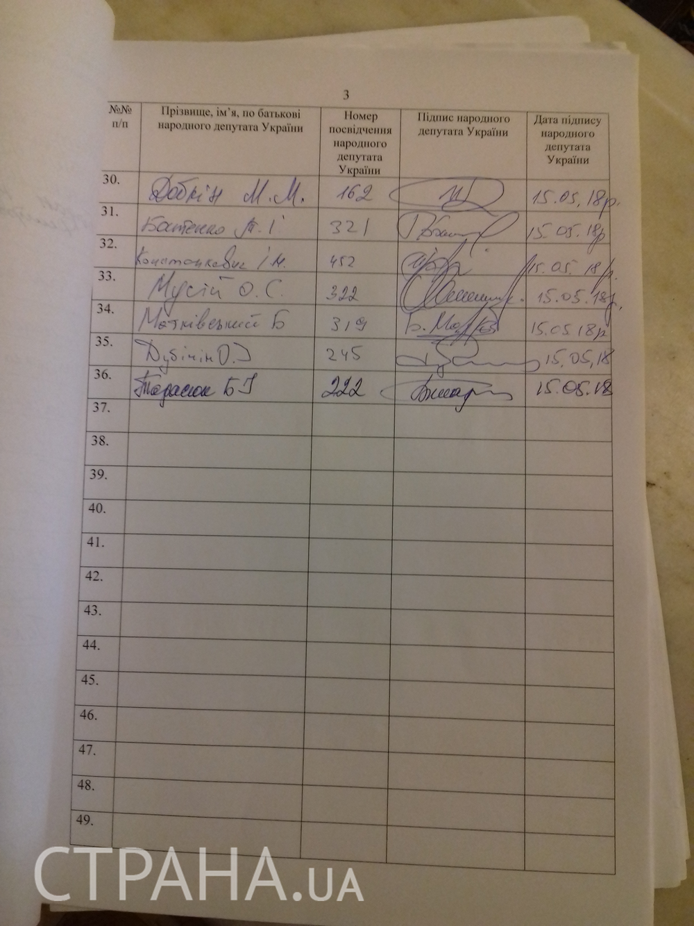 В распоряжении "Страны" оказались подписные листы за импичмент. К моменту публикации свои автографы за отстранение президента с его поста оставили 36 депутатов.