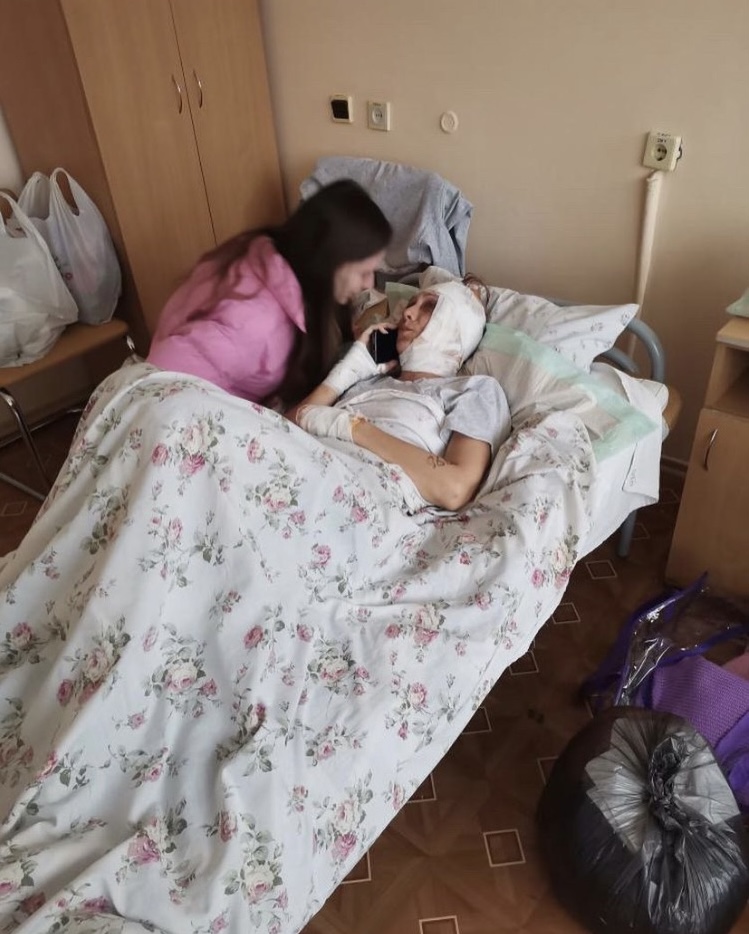 «У папы было сильное переохлаждение, он потерял много крови, его не сразу нашли. Та первая ночь на ИВЛ была решающей. На утро папа уже сам стал дышать, давление пришло в норму, его перевели в другую реанимацию. Меня к нему пустили на следующий день. Увидела его - а на нем просто живого места нет. Всё в ранах. Врачи говорили, не факт, что он сможет видеть, потому что все лицо в осколках. Но папа видит - это чудо. Он может сам говорить, он в сознании, но тоже еще очень слаб», - рассказывает Сабина.