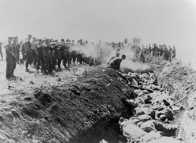 Из свидетельских показаний шофера Вермахта: "Раздетых евреев направляли в овраг примерно 150 метров длиной, 30 метров шириной и целых 15 метров глубиной. В этот овраг вело 2 или 3 узких прохода, по которым спускались евреи. Когда они подходили к краю оврага, немецкие полицейские хватали их и укладывали на трупы уже находившихся там расстрелянных евреев. Это происходило очень быстро. Трупы лежали аккуратными рядами. Как только еврей ложился, подходил полицейский с автоматом и стрелял лежавшему в затылок. Евреи, спускавшиеся в овраг, были настолько испуганы этой страшной картиной, что становились совершенно безвольными. Из города прибывали все новые массы людей и они, по-видимому, ничего не подозревали, полагая, что их просто переселяют".