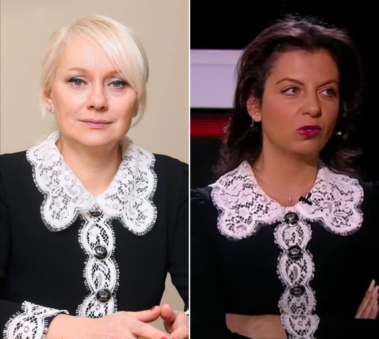 Кстати, платье с белым кружевным воротником, в котором Оксана Датий сфотографировалась для профиля на сайте налоговой инспекции, вероятно от Dolce&Gabbana. Стоит сейчас 40 300 грн. Точно такое же есть у руководителя российского телеканала RT Маргариты Симоньян.