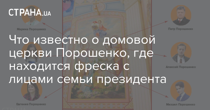 В сети появилось фото фрески, на которой изображена семья президента Петра Порошенко под покровом Божьей матери. Эта роспись в личной часовне (домовой церкви) гаранта, которая находится на территории его поместья в поселке Козин (Обуховский район) под Киевом.