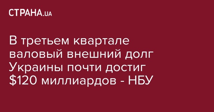 В третьем квартале валовый внешний долг Украины почти достиг $120 миллиардов - НБУ