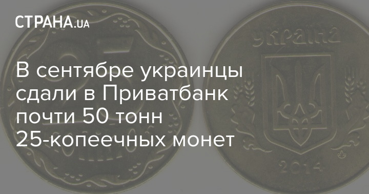 В течении сентября жители Украины обменяли в государственном ПриватБанке 25-копеечных монет, которые выводят из оборота, на сумму 4,2 млн грн.