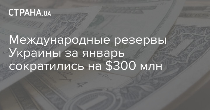 Размер международных резервов Украины по итогам января сократился на 1,1% (300 млн долларов) и к началу февраля составлял 28,8 миллиардов долларов.