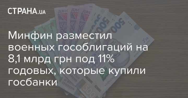 Во вторник, 1 марта, Министерство финансов Украины впервые разместило военные гособлигаций на 8,1 млрд грн под 11% годовых на 12 месяцев. Бумаги будут погашены 1 марта 2023 года.