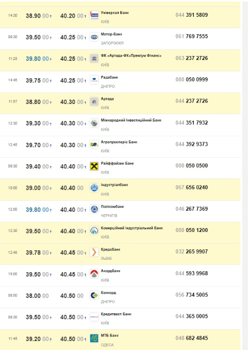• 39,20-39,95 грн/$ — Укргазбанк;