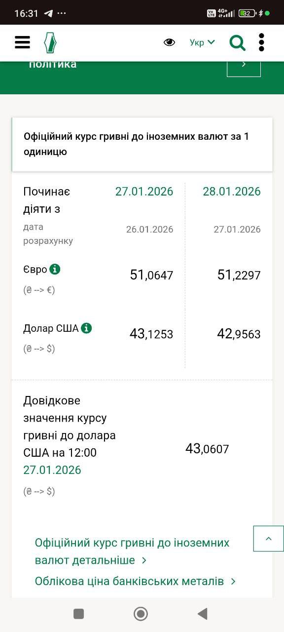 Это делается, чтобы сильнее не взвинчивать курс гривна/евро (считается через доллар), и не провоцировать удорожание европейского импорта. В итоге официальный курс к евровалюте на завтра, 28 января, подняли не очень сильно - с 51,0647 грн/€ до 51,2297 грн/€.