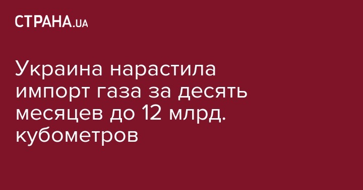 Украина нарастила импорт газа за десять месяцев до 12 млрд. кубометров