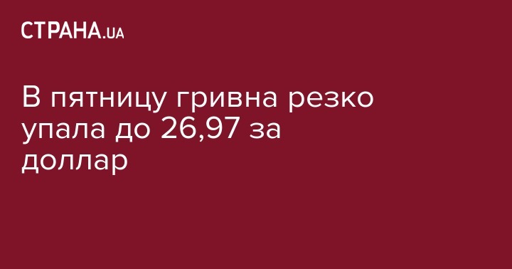 В пятницу, 3 ноября, котировки гривны к доллару США на межбанковском валютном рынке к середине торгов установились на уровне 26,95/26,97 грн за доллар. Об этом сообщил УНИАН дилер коммерческого банка.
