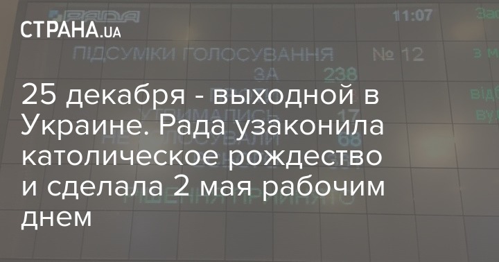 Сегодня, 16 ноября, Верховная Рада таки объявила католическое Рождество 25 декабря выходным днем, а 2 мая - рабочим.