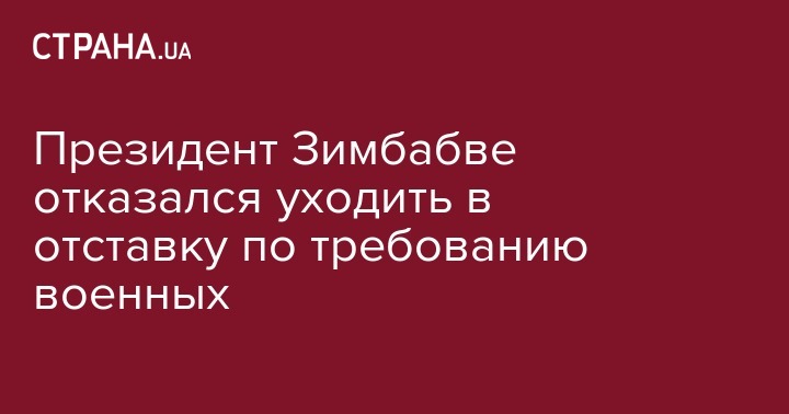 Напомним, после военного переворота в стране Мугабе удерживают под домашним арестом. Военные настаивают на передаче власти бывшему вице-президенту Эммерсону Мнангагве, который сформирует переходное правительство.