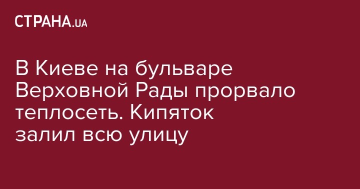 В Киеве на бульваре Верховной Рады прорвало теплосеть. Кипяток залил всю улицу