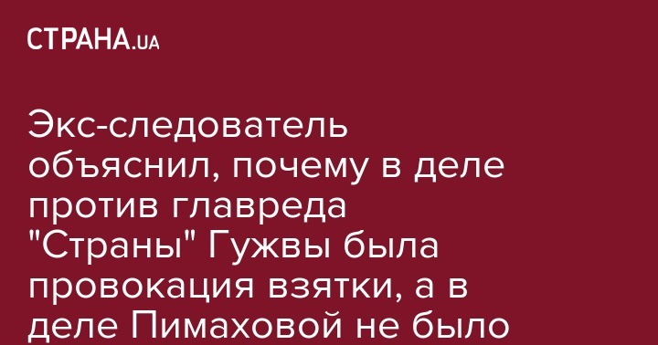 "Помните, дело Гужвы и оперативное видео, где агенты СБУ, или доверенные лица ГПУ, открыто предлагали и навязывали Гужве деньги за снятие материалов с сайта СТРАНА.ua? Многие юристы - специалистов в уголовном праве, тогда отмечали, что в отношении Гужвы со стороны правоохранителей была совершена стопроцентная провокация подкупа. Но там ее ГПУ в упор не увидела. Зато, по Пимаховои, Юрий Витальевич эту провокацию как-то смог разглядеть", - написал он.