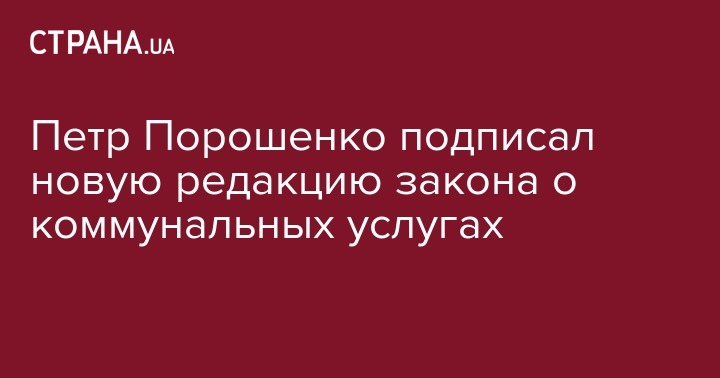 "Президент Петр Порошенко подписал закон Украины "О жилищно-коммунальных услугах", - указано в опубликованном сообщении.