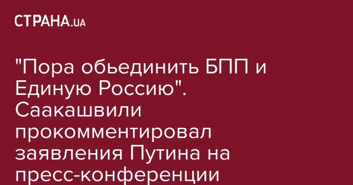 "Судя по заявлению - давно пора объединять Единую Россию и БПП. Типажи и риторика лидеров очень похожи. Алексей Навальный назвал Единую Россию - партией жуликов и воров, и это название вполне подходит и для будущего межпартийного объединения в украинском парламенте. Я совершенно уверен, что моя травля это прямой заказ Путина и спецоперация ФСБ и СБУ. Исполнители - власть Украины", - заявил Саакашвили в комментарии "Стране"