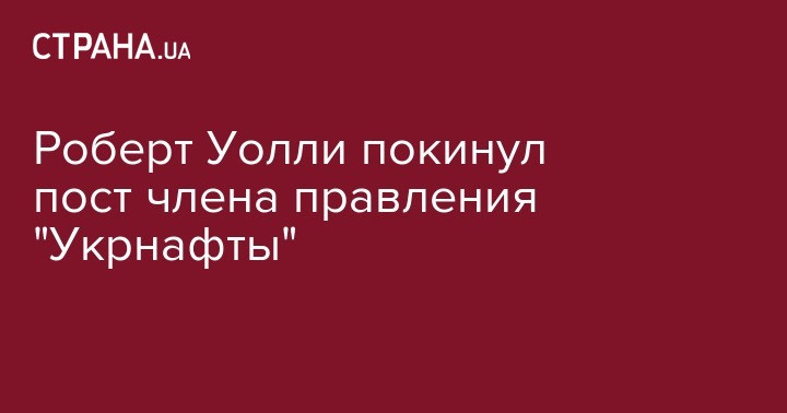Исполнительный вице-президент по вопросам технологий и услуг ПАО "Укрнафта", член правления компании Роберт Уолли покинул свой пост.