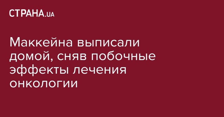 Американского сенатора-республиканца Джона Маккейна выписали после лечения из военной больницы Walter Reed в Вашингтоне. Он вернулся в родной штата Аризона, где будет продолжать курс реабилитации и лечения в местной больнице Mayo Clinic, которая специализируется на раковых заболеваниях. Об этом сообщает "Голос Америки".