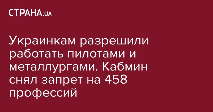 Как рассказала Войцеховская, приказ Министерства здравоохранения, который был отменен, запрещал 458 профессий (видов работ) для женщин.