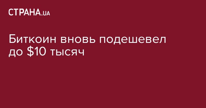 Курс биткоина опустился за сутки на 11,52% - до $10 440.