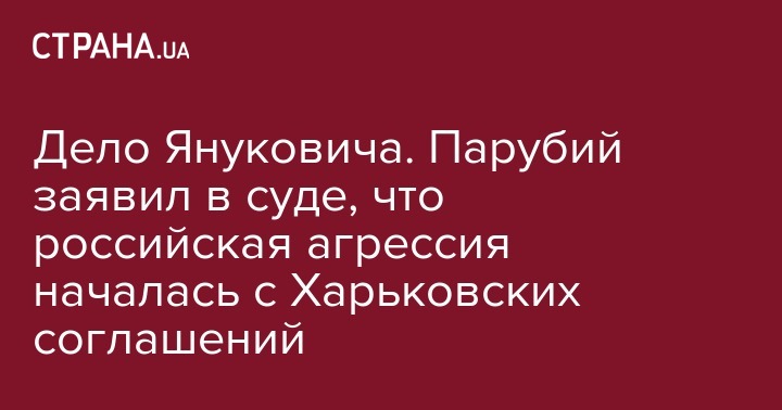 Председатель Верховной Рады Андрей Парубий на допросе в Оболонском райсуде Киева по делу о госизмене Виктора Януковича заявил, что российская агрессия началась с подписания Харьковских соглашений.