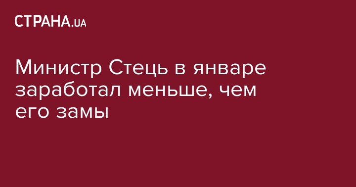 Заработная плата министра информационной политики Юрия Стеця за январь составила 16,2 тыс. гривен, а его заместителей - от 30,9 тыс. до 48,1 тыс. гривен, государственного секретаря министерства - 45,8 тыс. гривен.