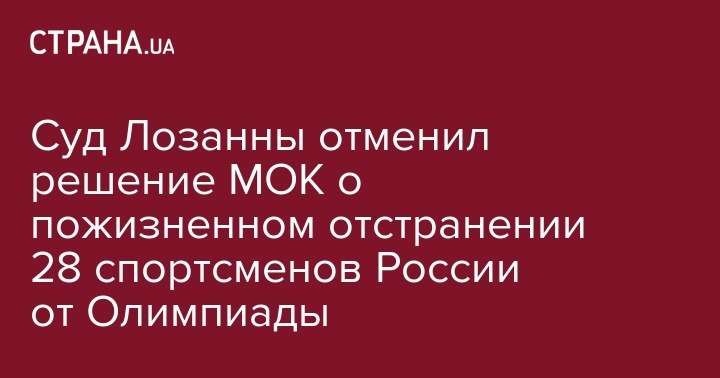 Спортивный арбитражный суд (CAS) отменил решение Международного олимпийского комитета о пожизненном отстранении 28 российских спортсменов за нарушение антидопинговых правил на Играх 2014 года в Сочи. Об этом говорится в пресс-релизе суда.