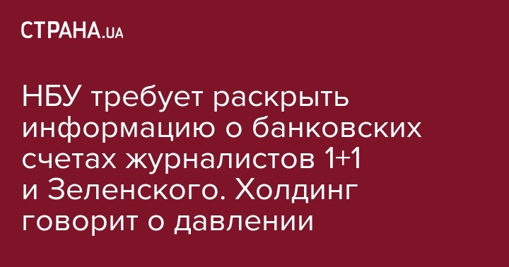 НБУ требует раскрыть информацию о банковских счетах журналистов 1+1 и Зеленского. Холдинг говорит о давлении