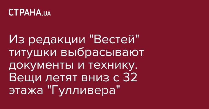 Люди в балаклавах, которые 8 февраля осуществили силовой захват и блокирование работы медиахолдинга "Вести Украина" , продолжают уничтожать документы, технику и другое оборудование редакции, которая находится на 32 этаже бизнес-центра "Гулливер". Об этом сообщила руководитель медиахолдинга Ольга Семченко на своей странице в Facebook.
