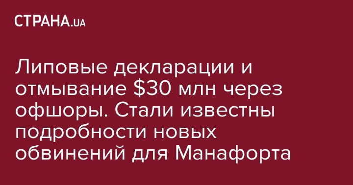 Липовые декларации и отмывание $30 млн через офшоры. Стали известны подробности новых обвинений для Манафорта