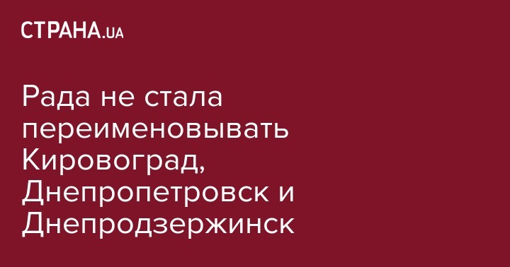 Рада не стала переименовывать Кировоград, Днепропетровск и Днепродзержинск