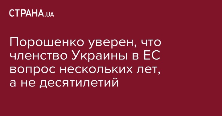 Порошенко уверен, что членство Украины в ЕС вопрос нескольких лет, а не десятилетий
