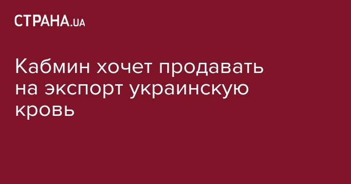 В Кабмине считают, что экспортный потенциал страны расширится, если начать продавать компоненты донорской крови и препараты, изготовленные из донорской крови и ее компонентов.