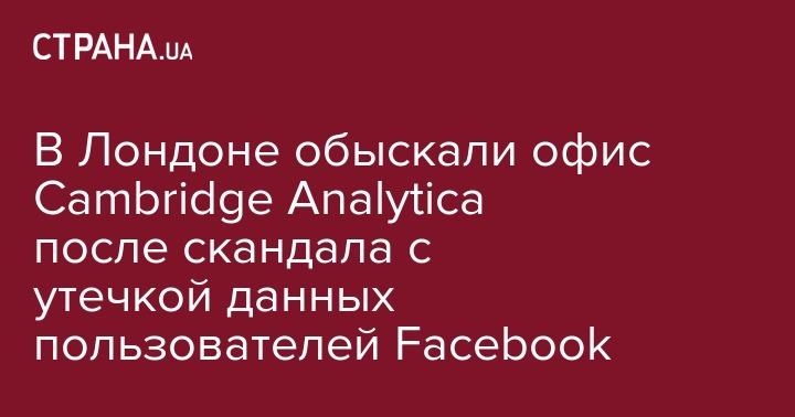 В Лондоне обыскали офис Cambridge Analytica после скандала с утечкой данных пользователей Facebook