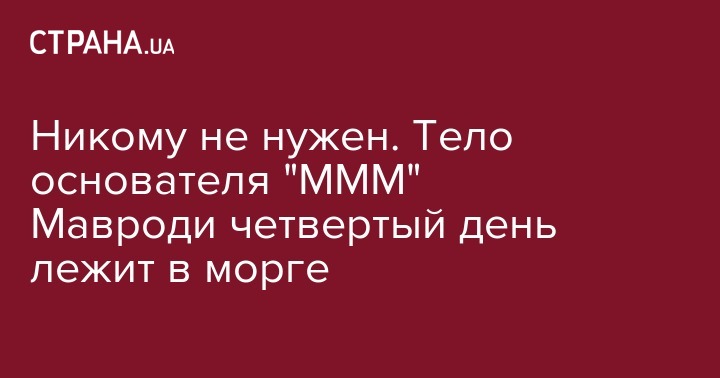Уже четвертый день после смерти основателя финансовой пирамиды "МММ" Сергея Мавроди за его телом так никто и не приходит. Известного махинатора могут похоронить за счет государства, передает Telegram-канал Mash.