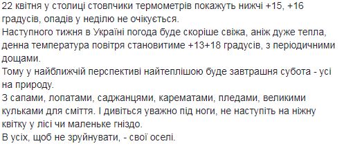 В то же время, в воскресенье похолодает. Днем ожидается +13 +18 градусов, на западе и юге до +20 градусов, в Черниговской, Сумской, Харьковской, Луганской областях +10 +15 градусов. В Киеве +15 +16 градусов.