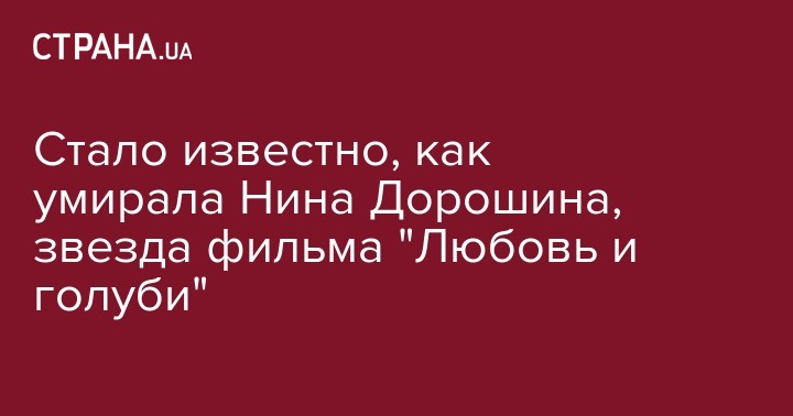 Ранее "Страна" сообщала, что стало известно, когда состоится прощание с актрисой фильма "Любовь и голуби" Ниной Дорошиной.