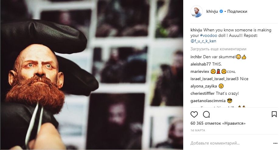 Кристофер Хивью (Тормунд Великанья Смерть) нечасто постит что-то в соцсетях – в последнее время в Instagram у него было примерно по одной фотографии в месяц. В последнем посте он показывал голову куклы с его внешностью. Перед этим он поздравлял свою жену с днем святого Валентина.