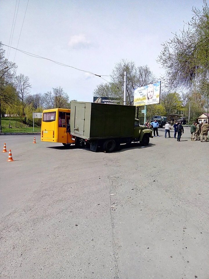В Бахмуте Донецкой области маршрутка не пропустила военный грузовик. Фото