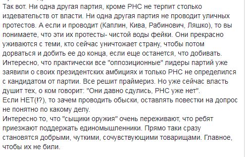 Так, СБУ обыскивает координатора Днепровской районной организации "Рух нових сил" Евгения Лукьянцева, Бориспольской – Ярослава Сарафинюка, Дарницкого - Андрея Подзеги.