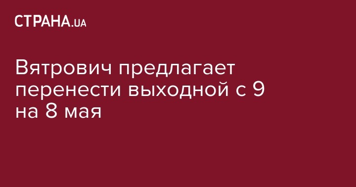 "Мы предлагаем оставить 9 мая как День победы над нацизмом, но выходной перенести на 8 мая, чтобы подчеркнуть важность нового формата памяти и примирения. Это было бы и важным фактором для деполитизации 9 мая. Потому что именно то, что этот день остается выходным, превращает его не в день, когда вспоминают о погибших и живых ветеранах, а в день, когда пророссийские силы выходят на улицы, чтобы напомнить о своем существовании, устраивая провокации с портретом Сталина, красными знаменами, так называемые "бессмертные полки", которые являются российской инициативой, направленной на то, чтобы напомнить, что Украина якобы является частью "Русского мира". Все это остается активным именно из-за того, что 9 мая, как и раньше, является выходным", - подчеркнул Вятрович.