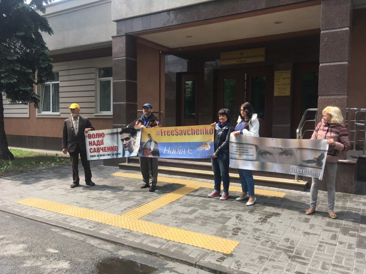 12:30 Перед началом заседания пятеро сторонников Надежды Савченко устроили что-то вроде пикета под зданием суда, передает корреспондент "Страны". Полицейские спокойно зашли в помещение суда.